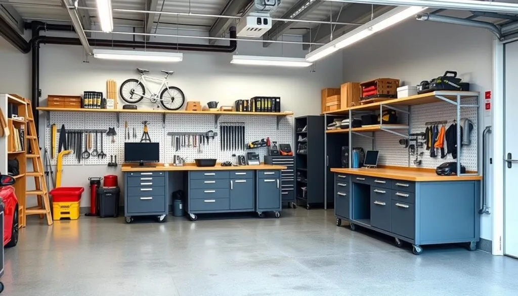 Mobile workstation solutions can change the game in your garage workspace. They let you move your workstation around, optimizing your space. This makes your garage a more efficient place to work.